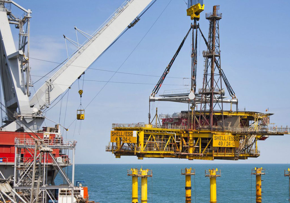 Dismantling is done on a heavy crane vessel (HLV) or a semi-submersible crane vessel (SSLV)